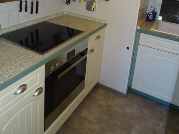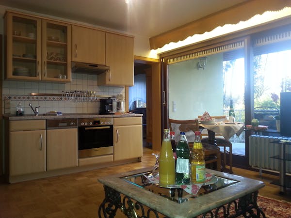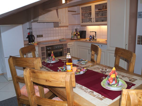 - Voll ausgestattete Küchenzeile ohne Spülmaschine. Die Gläser, das Besteck und Service sind jeweils sechsfach vorhanden.